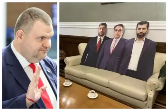 Лидерът на ДПС-НОВО НАЧАЛО обяви, че кабинетът му е "музей на сглобката", като показа всички помещения, включително и тоалетната: "Отидете, разгледайте бидетата, гардеробите, тоалетните. Ето го митичният кабинет на Делян Пеевски. Нека да го види цяла България, от който те се отказаха, а са били стотици пъти тук".