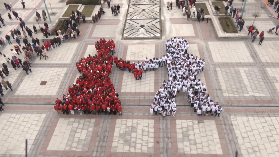 Освен плетенето на рекордната нишка, празникът във Видин включваше и зрелищна възстановка. Над 550 деца и младежи от местните училища, облечени в бели и червени тениски, се подредиха на площада и образуваха „жива мартеница”, пресъздавайки образите на традиционните символи Пижо и Пенда.