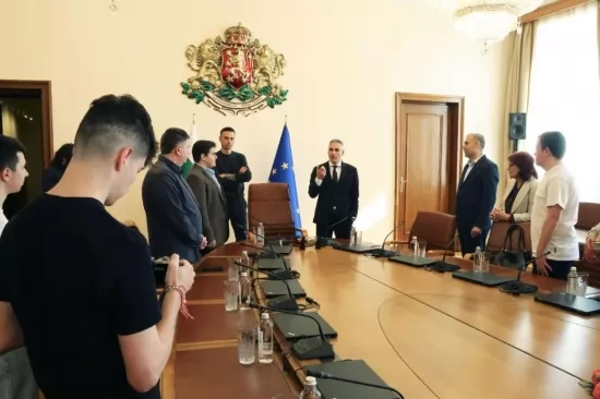 Ученици от Професионалната гимназия по транспорт в Бургас влязоха в заседателната зала на Министерския съвет. Посещението им е част от тяхна инициатива за опознаване на институциите, които движат държавата. В заседателната зала ги посрещнаха премиерът Андрей Гюров и неговият съветник по въпросите на младежта и спорта Димитър Бербатов. Министър-председателят вече беше видял учениците в Народното събрание, където те присъстваха на заседанието на депутатите.