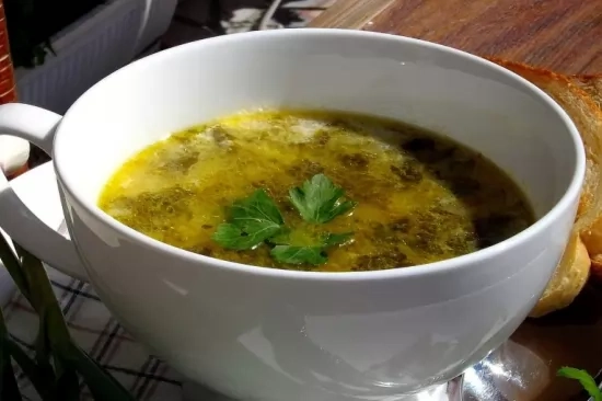 Първата стъпка от рецептата за супа от лапад е подготовката на зеленчуците. Нарязвате на ситно лука и моркова и ги слагате да се запържат леко в нагорещено олио. Почиствате добре листата лапад, като отстранявате дръжките и по-дебелите „жили“ от листата, след което го нарязвате на дребно и го добавяте към морковите и лука, за да се задуши.