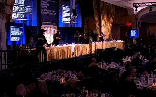 Много от 2600-те присъстващи на вечерята на Асоциацията на кореспондентите в Белия дом се скриха, докато сервитьорите избягаха към предната част на трапезарията, описва ситуацията агенцията, цитирана от БТА.