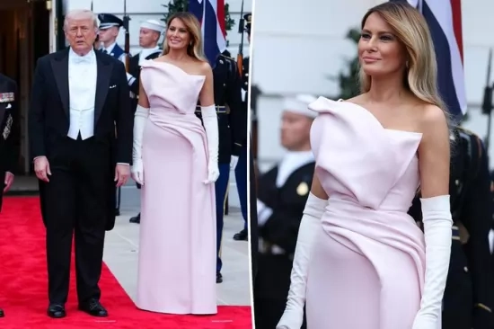 Мелания Тръмп направи впечатляваща модна поява по време на държавната вечеря във вторник вечерта с крал Чарлз III и кралица Камила.