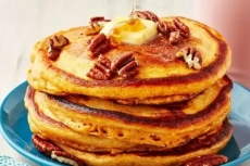 Необходими продукти:сладки картофи (печени или варени) - 300 г яйца - 2 бр. брашно - 120 г прясно мляко - 120 мл бакпулвер - 1 ч.л. канела - 1/2 ч.л. сол - щипка захар или мед - 1 - 2 с.л. (по желание